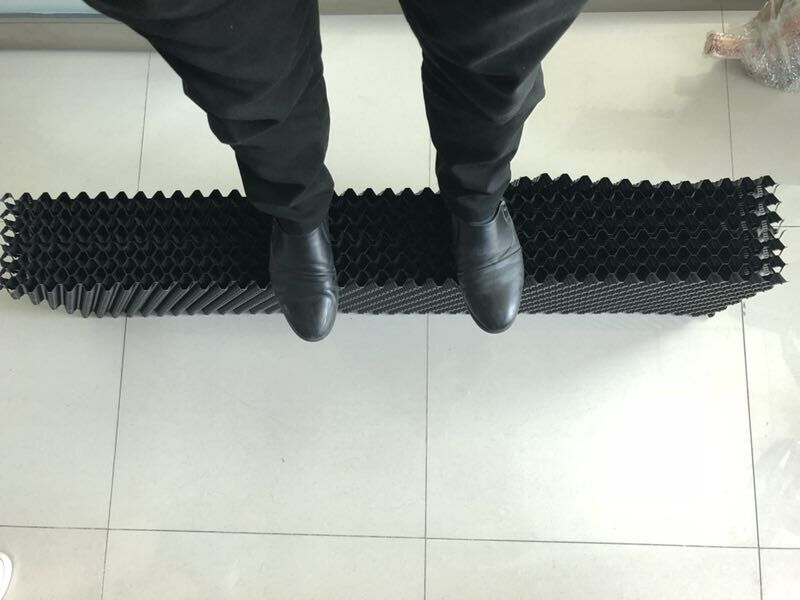 今天小編為了給大家的本公司生產(chǎn)的逆流方塔PVC填料,這是一款薄如紙的填料,可是你不能小看它,首先,不能因?yàn)樗谋《】此馁|(zhì)量,我們來看看這薄薄的填料能承受多少重量吧! 每張?zhí)盍隙己鼙?,每張?zhí)盍蟽H有0.3KG.小編把8張PVC填料粘了起來,所有的填料達(dá)到2.4KG,接下來小編演示團(tuán)結(jié)就是力量的說法,再薄的PVC填料,只要正反面粘貼起來,奇跡就發(fā)生了!小編體重65KG呢,站在粘貼好的8張?zhí)盍仙希尤徊蛔冃?,穩(wěn)如泰山,這質(zhì)量桿桿的。 小編推薦的,正是本公司賣得最火的逆流方塔PVC散熱填料,材料多薄已不是問題,問題是我們這質(zhì)量,不用自夸請看圖吧!